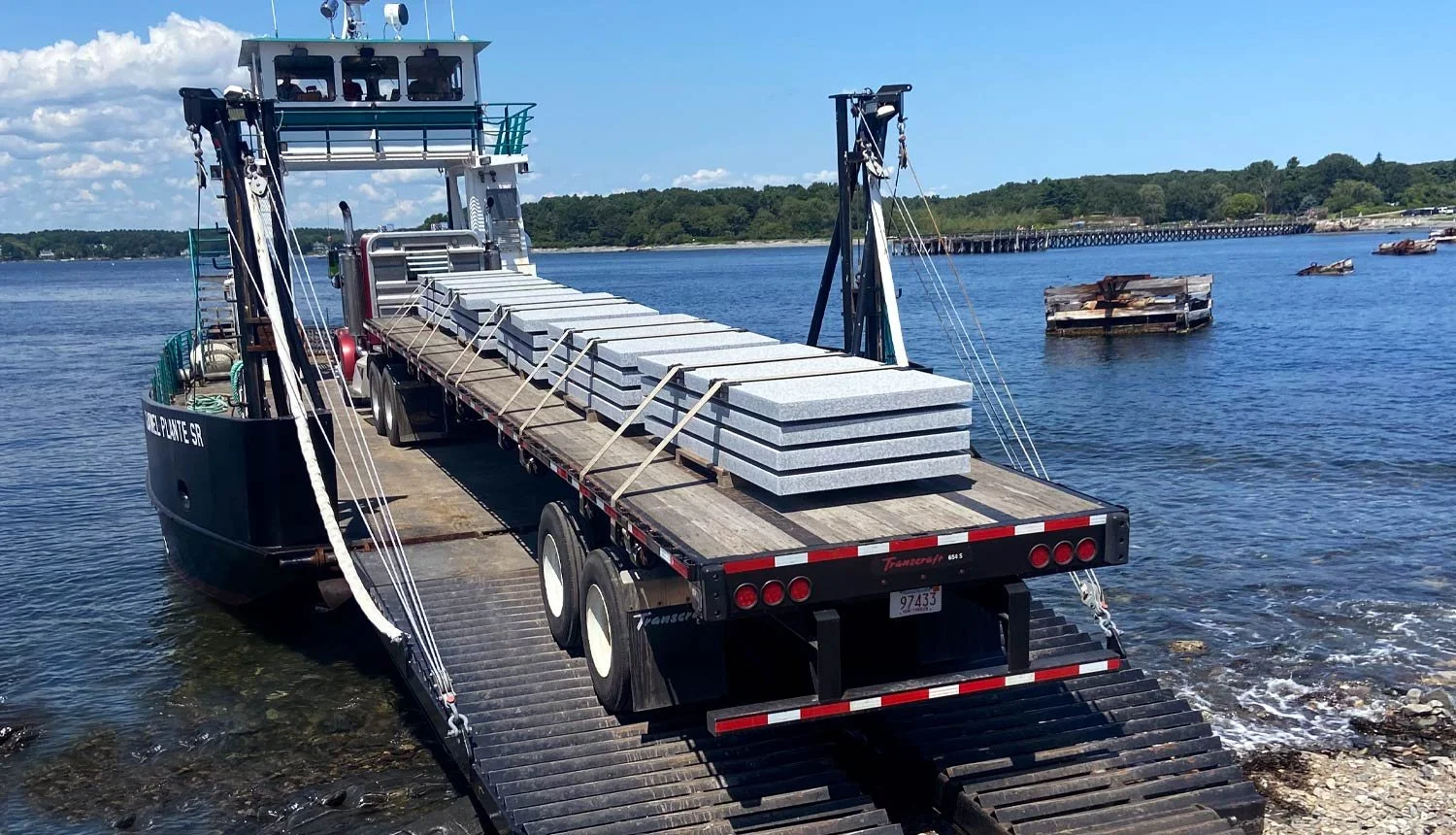 We transport almost anything, almost anywhere! We offer freight and vehicle transportation to nearly any island or shoreland. Our two, purpose-built barges are incredibly capable. With shallow drafts and bow ramps, they can land without a dock and handle all kinds of cargo — including multiple trucks and vehicles, heavy equipment, dumpsters, fuels, aggregates, and even modular homes. We're also certified to transport dangerous cargo, including blasting explosives.